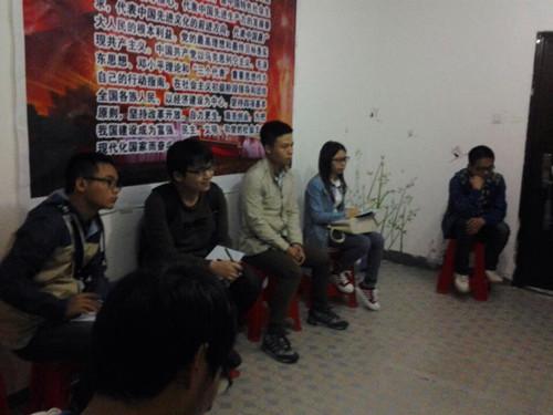 2015年4月19日晚7:30分,琴湖12栋架空层——机械院党员活动之家, 院学生党支部书记郭植昭老师、本科生四个支部所有支委,大家欢聚一堂,就机械院2015年上半年本科生的党务管理、党员活动和党员培训及发展等一些列问题,进行了广泛、深入的大讨论;也对今后机械院的党务工作进行了局部的改革和详细的安排。