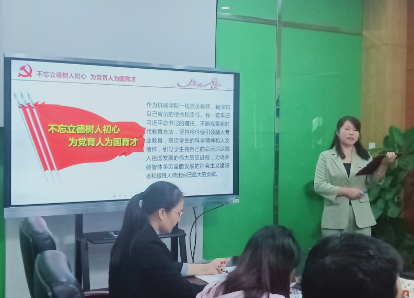 学院党委书记丁琰、党委副书记杨建军、教工党支部书记赵又红等8位老师担任本次演讲比赛评委,经过各支部前期推荐,朱戴博等8位老师参加了此次主题演讲比赛。