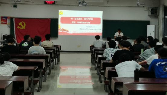 接下来,罗粢槿、吴柏成、肖正铁、熊子乐、李鹏津、蒋帅华、唐栋等7位考研学生代表就学校选择、考研资料、考研时间安排等方面进行了经验分享。其中考研至南京航空航天大学的罗粢槿,为大家讲述了如何选择考研学校、专业方向,并结合自身情况讲解了关于考研调剂工作的流程;考研至大连理工大学的李鹏津,分享了自己的考研复习经验和方法,他表示“重要的不是经验,是考研过程中的努力”。以高分跨考至上海财经大学的熊子乐分享了自己决定跨考后的心路历程以及其所付出的加倍努力。