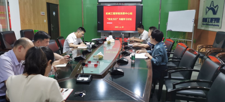 6月29日下午4点,在313党员活动室,机械工程学院党委中心组开展了党史学习教育读书班第四次学习——“学史力行”专题学习研讨,党委中心组全体成员参加。
