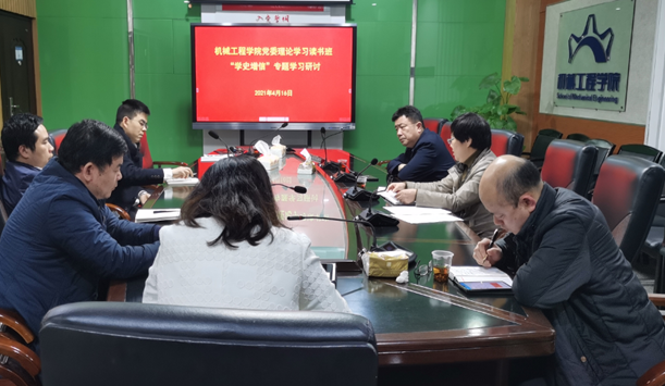 4月16日下午,机械工程学院党委中心组在313党员活动室开展 “学史增信”专题学习研讨。会议由党委书记丁琰同志主持,党委中心组全体成员参加了会议。