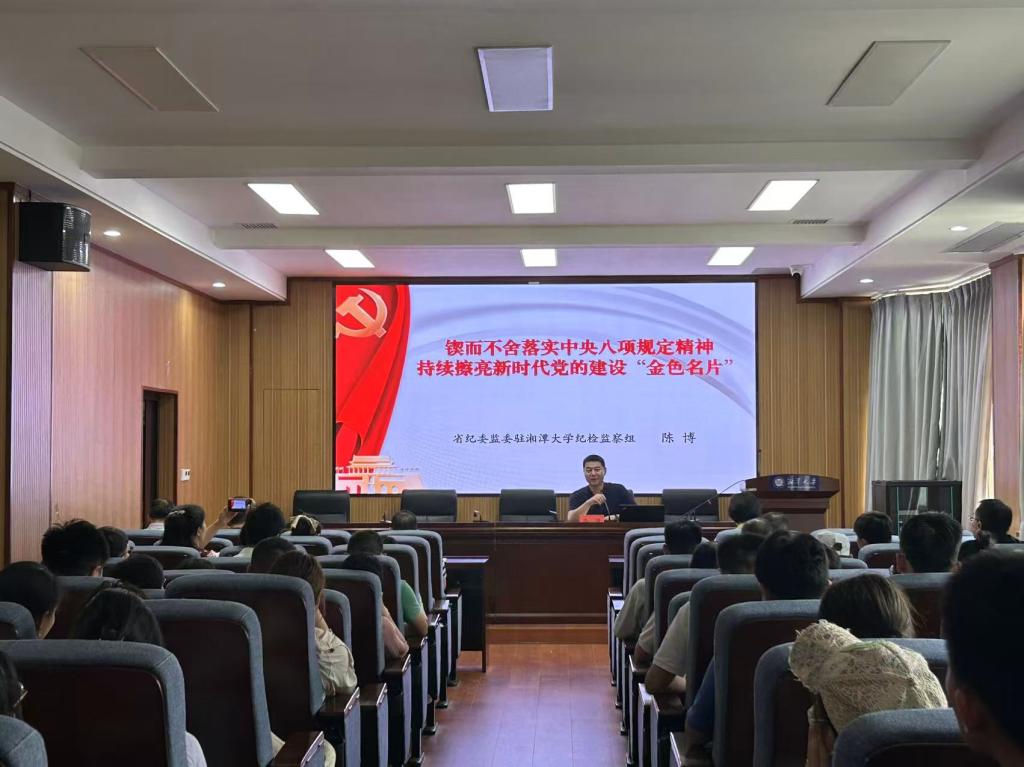 为深入学习贯彻中央八项规定精神,持续推进作风建设,韩国漫画 于2025年5月27日在机械楼举办了专题党课。本次党课由学院党委书记李友芝主持,特别邀请湖南省纪委监委驻韩国漫画 纪检监察组陈博同志为全体党员干部做题为《锲而不舍落实中央八项规定精神,持续擦亮新时代党的建设“金色名片”》的宣讲。
