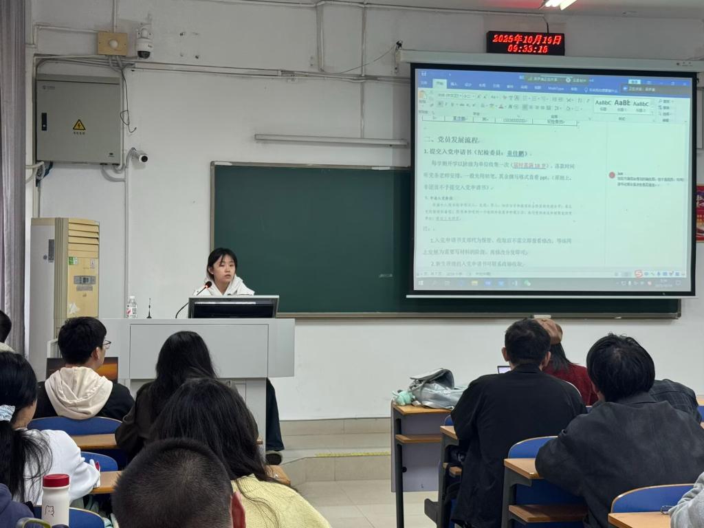 随后,吴伊美同志聚焦党员发展材料易错点进行讲解。她围绕入党申请书、入党积极分子考察登记表、预备党员转正申请书等关键材料,通过“手把手教学”的方式,帮助支委成员掌握撰写规范,保障发展党员各环节材料完整合规。