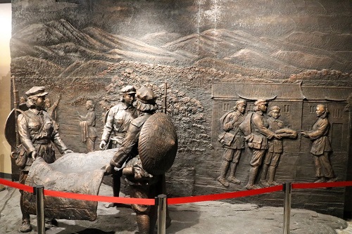二楼展厅则记录了在汝城发生的许多可歌可泣的革命故事。对于长征,习近平总书记总结到,“长征的胜利离不开人民,人民拥有无限力量。”红军战士们秋毫无犯的严明纪律、舍己为人的奉献精神赢得了汝城人民的支持。汝城县人民在革命最危难的时刻,选择奋不顾身,支持革命事业,军民之间上演了“红军借据”“半床棉被”“一只藤碗”等反映军民鱼水情深的动人故事。其中最令人动容的是“半条被子”的故事,1934年11月,3名红军姑娘借宿徐解秀老人家中,临走时,她们把仅有的一床被子剪下一半留给老人,并答应等到革命胜利时,她们还会回来,给徐解秀置办一床崭新的被子。在纪念长征胜利八十周年大会上,习近平总书记深情复述徐解秀老人的话:“什么是共产党?共产党就是自己有一条被子,也要剪下半条给老百姓的人。”