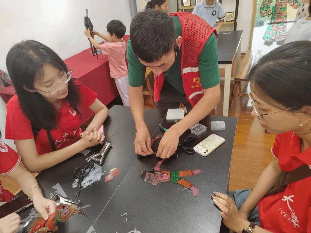 在志愿服务过程中,实践团深刻感受到湘潭纸影非遗文化正在积极拓展传播渠道,以更加娱乐放松、受大众所喜爱的形式进入社区、学校,融入大众生活,让更多人能够零距离接触、了解纸影制作的精湛工艺,走近非遗文化,认识保护和传承文化遗产的重要性,同时,传承人们通过不断创新影偶角色、纸影剧目和表演形式,与时俱进融入更多当代年轻人更熟悉、更喜爱的元素以此吸引更多青年群体来了解湘潭纸影非遗技艺,加入到非遗传承的队伍中。