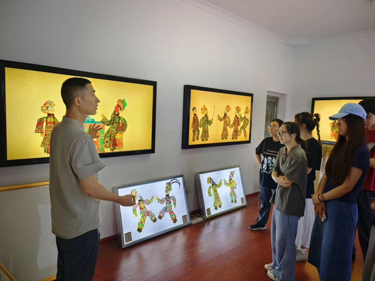 (图为吴渊先生向实践团成员展示操纵纸影人物)