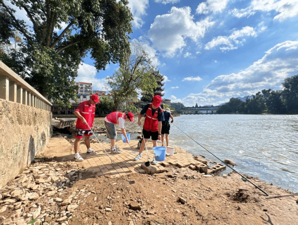 抵达渠江后,实践团成员在靖州县“河小青”行动中心工作人员的带领下,手持特制钳子及其他清洁工具,细心地沿着渠江的部分河段,逐一清除沿途的垃圾与杂物,以实际行动诠释了对自然环境的尊重与爱护。