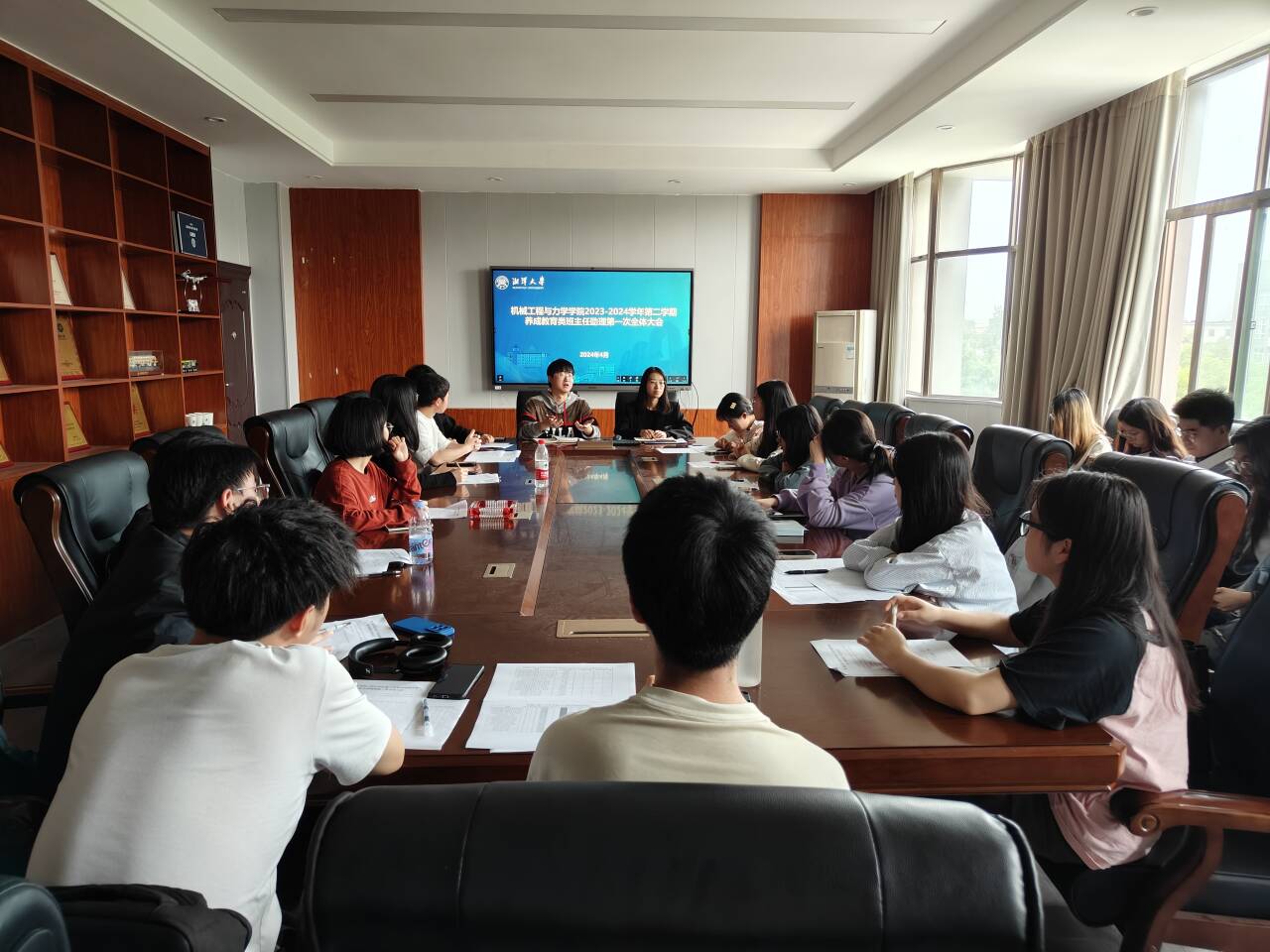 为全面增强2023级养成教育类班主任助理工作实效,全方位落实新生培养管理工作,韩国漫画 于4月18日中午在机械楼312室召开了本学期养成教育类班主任助理第一次全体会议。学院专职辅导员曹译文老师、闫锦老师以及全体2023级养成教育类班主任助理参与此次会议。