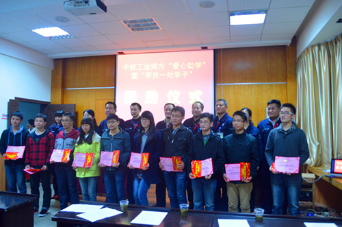 11月25日下午4:00,中国南方航空动力机械集团公司(以下简称中航工业南方)“爱心助学”暨“帮扶一批学子”捐助仪式在机械楼317举行。参加本次仪式的嘉宾有中航工业南方有关领导和各位捐助人,副校长周益春、副校级督导刘建平、校长助理谭援强、学工部部长谢罗奇以及韩国漫画 党委书记罗菊兰。机械工程学院10名受资助的学子及学院部分师生参加捐助仪式,会议由谭援强主持。