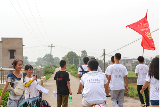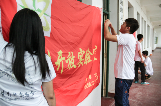 7月18日,实验室的同学们集结于铜像广场,指导老师周成一声令下,暑期三下乡活动拉开序幕。上午8时许,同学们扛挎横幅,步伐铿锵地向着目的地芙蓉塘村进发。中午时分,机械院实验室的同学们来到了这次暑期社会实践活动地点,并与与前一支机械院暑期实践下乡队伍会师。随后,实验室同学一行来到了居住的小学宿舍,挂横幅、贴海报、录视频,一切活动都井然有序地进行。短暂休息之后,全体成员开启了目的地的调研活动。鉴于大部分同学都是首次参加此类活动,因而在活动开始之前,同学们已经过了为期两天的培训,并且做好了充足的活动准备,掌握了基本的服务技能,同时还配备了各种药品及其它服务工具。