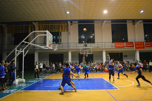 晚上9点整,介绍完到场嘉宾与参赛队伍,主持人宣布比赛开始,双方球员依次入场,整个球场萦绕着一种剑拔弩张的气氛。终于,随着裁判的抛球,双方正式展开激烈的角逐。跳球阶段,12机五班队伍抢得先手。比赛过程中场上球员奋勇拼搏,场下同学同样热情四溢,用战鼓与尖叫为场上的球员呐喊助威。上半场结束,13机设一班17:16暂时领先12机设五班。中场休息时间,拉拉队为我们表演了一段活力四射的啦啦操,将现场的热情气氛再一次拉到了一个新的高度。下半场的比赛较上半场更加激烈,13机一始终保持领先,12机五紧追不舍,比赛进行得如火如荼。下半场结束,双方以34:34的平局,另外展开了加时赛。加时赛中,13机设一班队伍拿出十二分的努力,最终以43比36的比分,战胜了12机设五班,获得了最终冠军,全场人员为其欢呼。