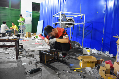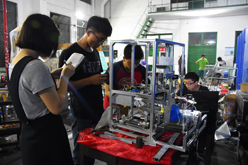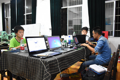 积极响应号召,院内同学踊跃投身于机械创新大赛中,5月12日晚,记者来到学生开放实验室进行深入采访。 走入机械院开放实验室,这样的景象映入眼帘:一个办公桌,几台电脑,一个模型,几台机械。同学们或是聚精会神的编程,或是精细的揣摩着构造,或是耐心的做着模具。即便是深夜,即便是天气酷热,大家依然精神饱满的准备比赛。13级机械设计及其自动化专业的邓鑫学长告诉我们:“能够支撑下去的信念就是兴趣。大家一起工作才有动力,从简单模块再到有机结合是最有成就的事情。”并鼓励学弟学妹们有兴趣就要大胆尝试,一步步走下去就会发现世上无难事,只要精益求精打造细节品质就能成功。 晚上十点半,同学们依然在忙碌的备赛中,丝毫不敢怠慢。他们用心制造产品的态度就是工匠精神的思维和理念,李克强总理提出的要培育精益求精的工匠精神已然在他们身上体现。