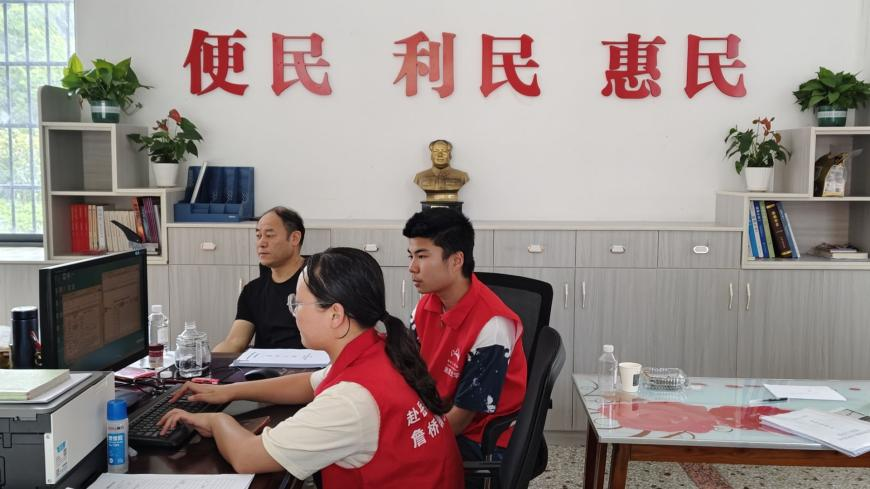 与此同时,实践团的另一组成员在村干部的指导下录入外出务工人员的交通补助信息,确保每一位辛苦外出务工的村民都能得到应有的帮助,提升生活质量,减轻经济负担。