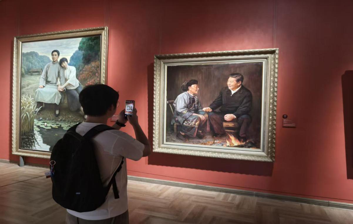 在乡土题材作品展区,描绘乡村劳作、田园日常的画作格外动人。农民们在田间挥汗、孩童在草垛嬉戏的场景,以细腻笔触还原生活本真。那些粗糙皮肤、质朴笑容,让团队成员们看见了艺术家对乡土的眷恋,领悟到艺术源于生活,是对平凡日子深情的记录与升华。“人性与爱”主题作品里,展现灾难互助、人间温情的画面撞击心灵。无论是救灾现场人们携手的身影,还是陌生人给予的温暖扶持,都传递出人性光辉。画作跨越视觉审美,使团队成员在共情中汲取向上力量,明白艺术可凝聚社会共识,传递爱与希望 。