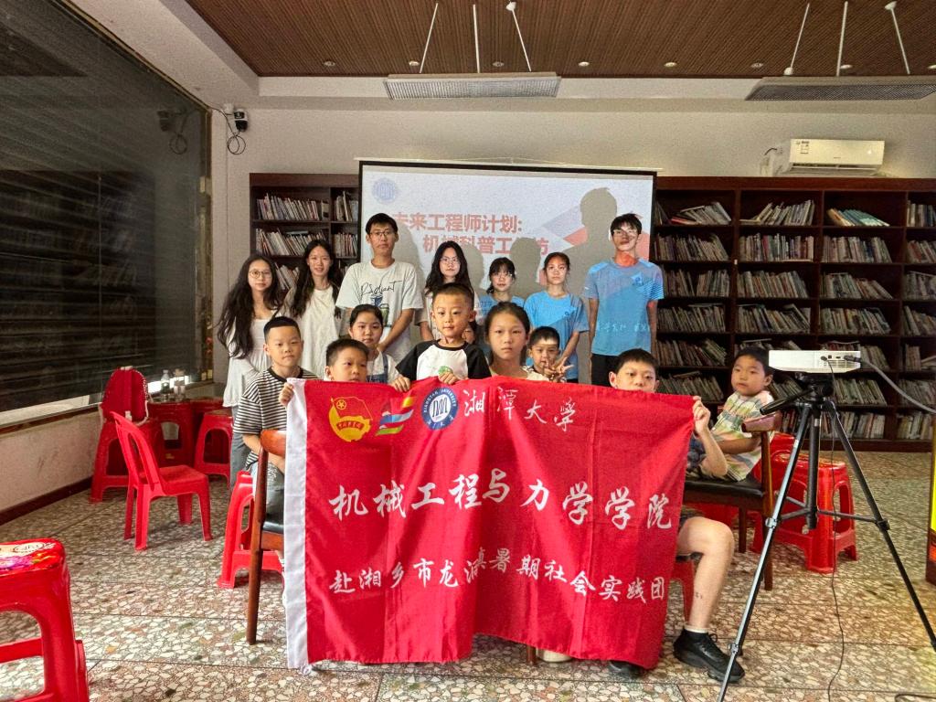 在龙洞镇24小时图书馆,实践团创新打造“大将故事会+ 科技小课堂”的融合课程。通过红色绘本、情景演绎和机械科普,队员们向孩子们讲述陈赓、谭政的抗战故事、湖南作为抗战主战场的战略地位和国防发展中的机械力量。这种互动式教学不仅激发了孩子们的爱国热情,也激发了小朋友们科技报国的热情。