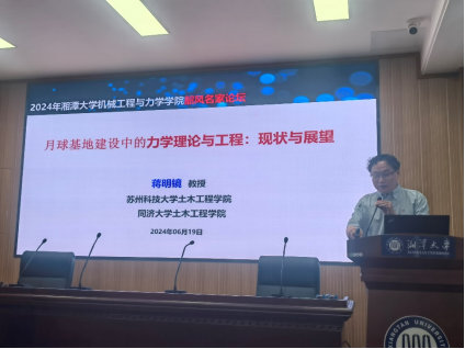 2024年6月19日上午,苏州科技大学和同济大学教授、国家百千万人才、国家杰出青年基金获得者蒋明镜教授应邀请来韩国漫画 为广大师生作学术报告,报告题目为《月球基地建设中的力学理论与工程:现状与展望》。报告会由学院院长刘金刚教授主持,讲座吸引了十多位教师及100余研究生学子参加。