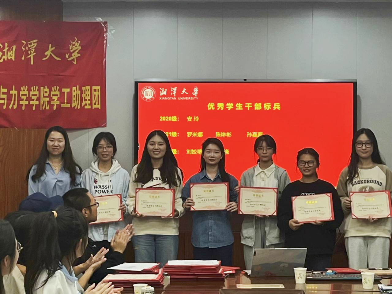 颁奖结束之后,全体人员在机械楼大厅合影留念,新入编助理继续参与后续工作安排。在工作讲解中,冀志宏老师就团队氛围建设、助理综合素质培养以及自我能力评估等方面进行讲解,为新入编的助理提供了工作的参考方向以及如何做好学生工作的宝贵经验。此次会议的召开,进一步凝聚了全体学工助理的思想共识,将稳步推进本学期学院各项学生工作顺利开展。