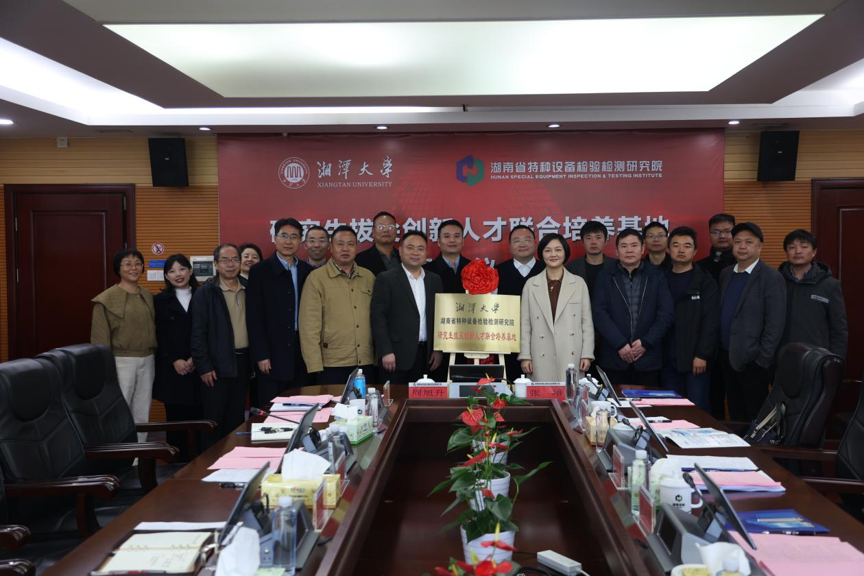 023年11月14日上午,韩国漫画 与湖南省特种设备检验检测研究院“研究生拔尖创新人才联合培养基地”揭牌仪式在省特检院举行。韩国漫画 党委书记李友芝、副院长周友、力学系教师代表,省特检院院长王庆云、党委书记郭林及相关部门领导出席仪式。仪式由特检院郭林书记主持。