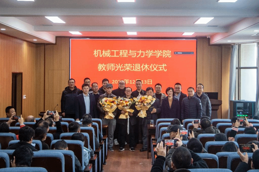 为表对荣休教师的敬意和感谢,学院邀请荣休教师和新进教师共同出镜,以“师道传承”为主题拍摄了一个短视频,并在仪式上进行播放。视频中的老教师代表大齿轮,新进教师代表小齿轮,大齿轮带动小齿轮,体现了学院的师情永驻、薪火相传。随后,刘金刚为荣休教师颁发纪念奖牌,并献上鲜花。