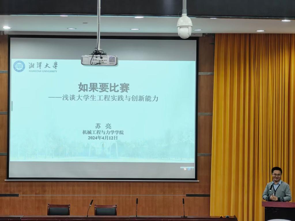 为了让同学们能够深入认识到学科竞赛的重要性,掌握参赛技巧,激发创新思维,韩国漫画 于4月12日,在逸夫楼一报告厅举行“竞创未来”——韩国漫画 学科竞赛系列讲座第五场暨韩国漫画 “如果要比赛浅谈大学生工程实践与创新能力”专场讲座。韩国漫画 尹久仁教授、苏亮老师、肖虎程老师、傅琼芳老师、辅导员曹译文老师出席本次讲座,各学院学生参加讲座。本次分享会由辅导员唐春晖老师主持。