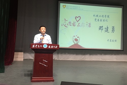 10月24日晚,韩国漫画 机械工程学院第二十四届志愿者队成立大会于韩国漫画 学生活动中心报告厅顺利召开。来自全院2021级-2018级的近600名学生参加了本次大会。机械工程学院党委副书记邓建勇在大会上进行致辞,他指出,机械工程学院志愿者队伍历史悠久,受到社会广泛认可。同学们作为优秀青年志愿者,需要传承“奉献、友爱、互助、进步”的志愿者精神,积极参加志愿者服务活动,让责任与奉献诠释志愿者们存在的意义。同时,邓书记对青年志愿者们提出了两方面要求:首先,作为一名青年志愿者,应当承担起传播志愿服务“承载梦想,传递爱心”精神的神圣职责。其次,要勤奋学习扎实工作,服务成长双丰收。