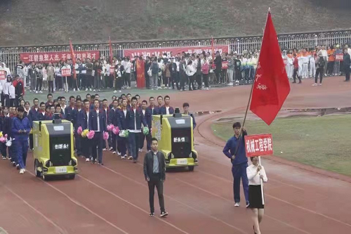 师生同心普华章,苍穹之下斗志昂!此次开幕式,机械院表演方阵推陈出新,率领着无人物流车—“小黄牛”一同表演。随着音乐《good time》响起,他们用娴熟的舞步、充满活力的身姿向全校师生展示着本次运动会的热血青春,同样预示着机械院运动员必将再创佳绩!