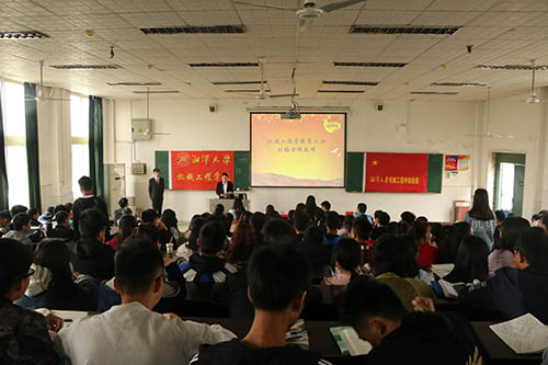 之后,信息工程学院的刘行老师为我们进行第一次授课,他带领同学们一起学习并深入了解党的十九大有关知识以及十九大报告中的关键字。刘行老师指出,我们今天要讲的内容包含一个主题,两个关键字,三个问题。一个主题即“拥抱新时代,担当新使命”,两个关键字即“新时代”和“新使命”,三个问题即“新时代是个什么样的时代”,“如何理解新时代赋予青年的新使命”,“新时代的青年,如何践行新使命”。带着这三个问题,刘行老师与同学们一起进行了探讨和学习。刘行老师强调,作为新时代的新青年,我们要学会担当,其实担当并不遥远,可以从遵纪守法做起,从关爱身边的人做起,从勇于承担社会责任做起,从多做实事多做好事做起,面对身边的每个人,遇到的每件事,手头的每份工作每项任务,扮演的每种社会角色,都有担当与否的选择。最后,刘行老师引用《少年中国说》中的“故今日之责任,不在他人,而全在我少年”来强调了青少年对社会和国家起到的重要作用。