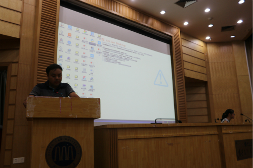 随着主持人宣布大会正式开始,参会人员全体起立奏唱中国共青团团歌《光荣啊,中国共青团》。随后,机械工程学院团委第一副书记刘桑桑为大会致词。她首先对参与此次大会的嘉宾表示感谢,随后她讲道机械工程学院爱心集团成立以来,本着“团结,互助,友爱,奉献,进步”的宗旨,以发样“雷锋精神”为理念,勤勤恳恳,认真负责地展开各种志愿活动,在各方面都取得了骄人成绩,受到广大师生,社会群众的广大好评。之后,爱心集团播放自制的志愿者回顾视频。接着,周成书记为受到表彰的志愿者李志杰,王成浩及三下乡先进个人肖晓雨颁奖;15级机械设计制造及其自动化5班,16级能源与动力工程1班作为爱心班级由代表学工办老师刘韬颁奖;刘桑桑为优秀志愿者黄世杰颁奖。颁奖结束后,爱心集团团长唐硕和志愿者代表伍艳芳发言,两人均提到志愿活动不是谋名利的,而是真心帮助有需要的人的。志愿活动也许很渺小,但积少成多,聚沙成塔,志愿活动会帮助到更多的人。接下来,全体起立,庄严宣誓成为一名光荣的中国青年志愿者。