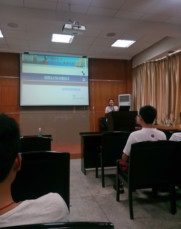 2016年6月30日上午9点至10点,在机械楼317会议室,韩国漫画 2014级材料科学与工程专业研究生刘艳为大家带来了一场以“如何从CSCD过度到SCI”为主题的研究生学习心得交流会。会议由研究生班主任钱锦文博士主持,同时本次会议参加的有思政老师李彦和2015级研究生。此次会议现场讨论气氛热烈,同学们积极地和刘艳师姐进行了学术探讨。