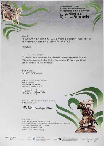 台湾国际学生创意设计大赛是台湾最具影响力的全球学生设计赛事,也是全球规模最大,最具指标性的学生设计竞赛之一,有国内外顶级专家学者组成的评审团,选出体现创意与美感的优秀学生作品旨在鼓励国际间学生创意设计交流,发掘新生代创意设计人才。被视为极具权威性的学生设计奖项。