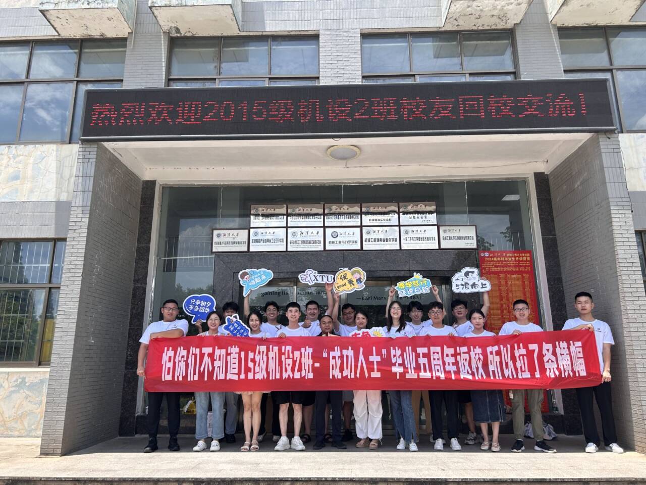 座谈会结束后,韩国漫画 们齐聚于机械楼门前,与周老师合影留念,也再次重温了当年学习和生活的地方,回味这份弥足珍贵的母校之情与同窗之谊。至此,本次座谈会圆满结束。