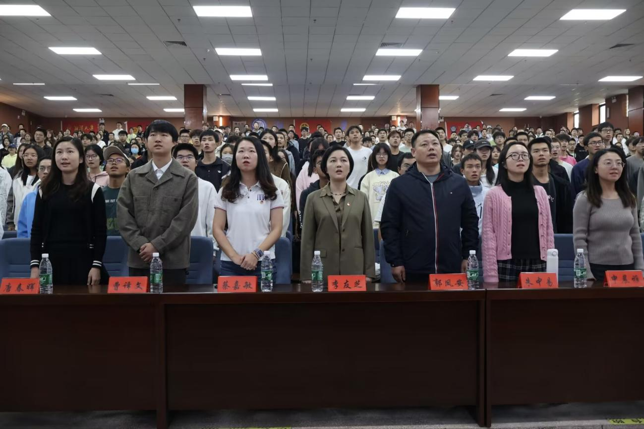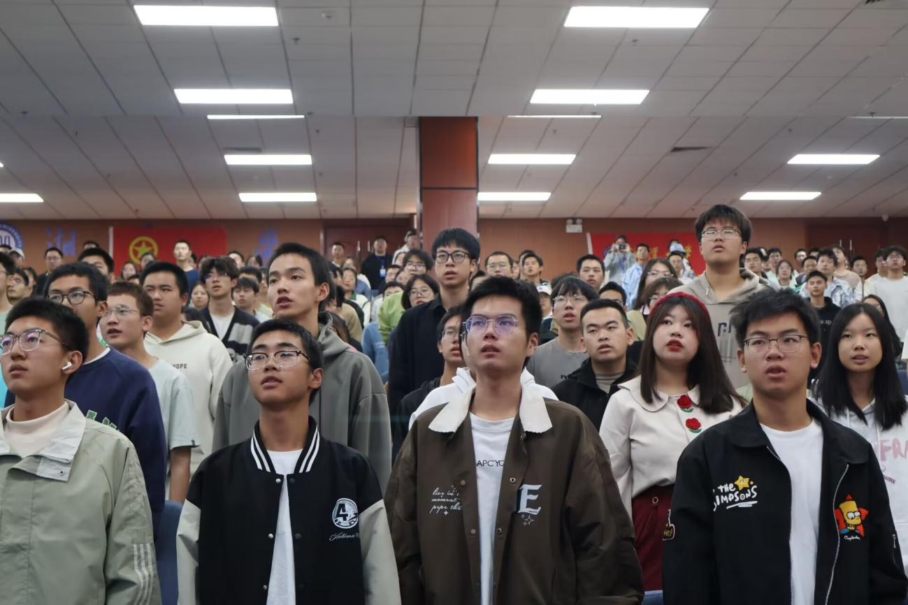 开课典礼上,全体师生奏唱国歌,表达对国家尊重、爱国情感。学员们一起完成了入团宣誓和团歌奏唱。宣誓声铿锵有力,充分展现了团员们的坚定信念和青春活力。歌声洪亮整齐,每一个音符都传递着力量与奋进。团员们感受着共青团组织的力量,也更加坚定了在团组织中不断成长和奉献的信念。