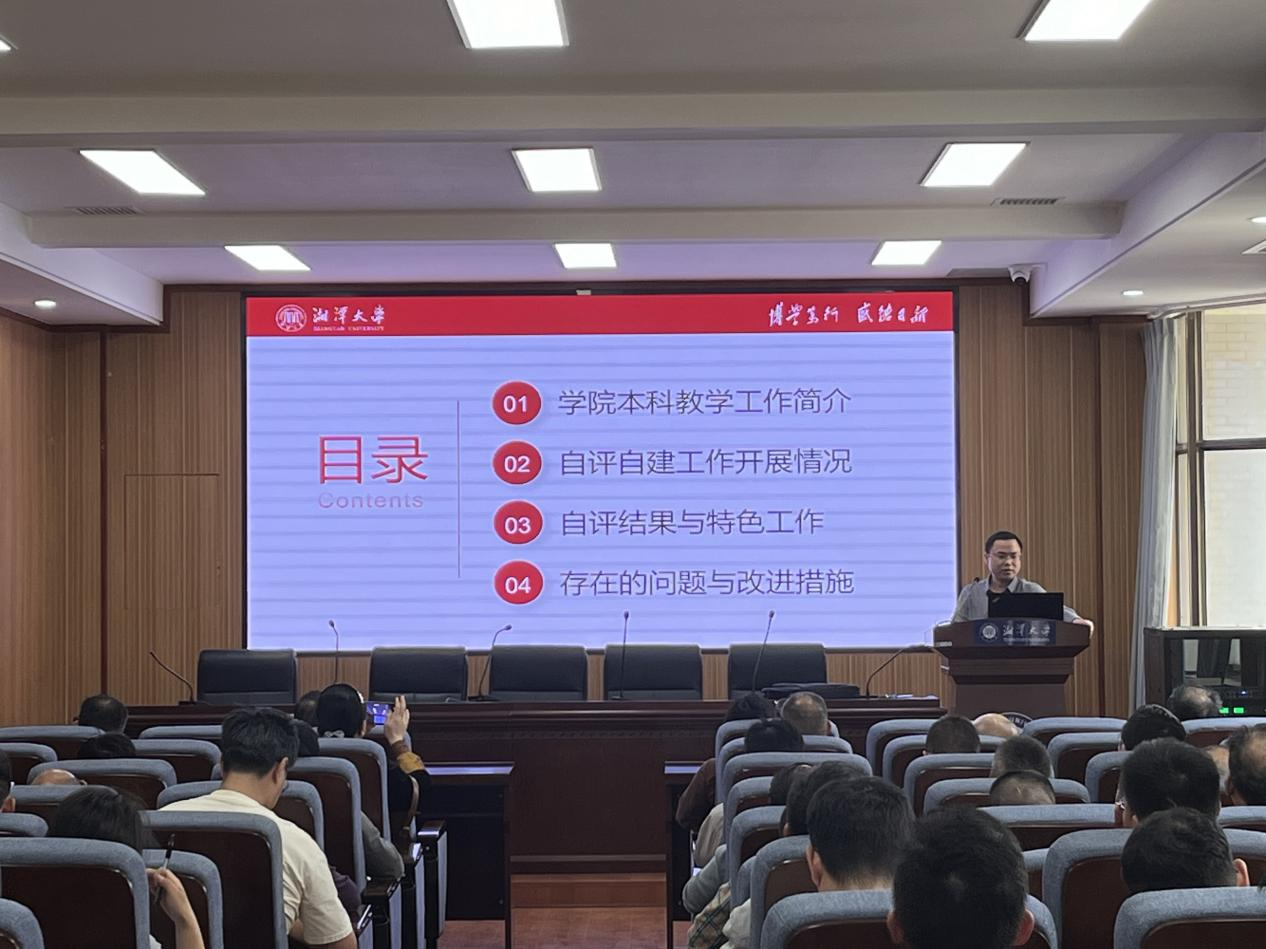 会上,左青松副院长从学院本科教学工作、自评自建工作开展情况、自评结果与特色工作、存在问题与改进措施四个方面讲解了学院本科教育教学审核评估工作相关情况。并强调,全体教职工要深刻理解审核评估的各项指标和要求,明确自身职责与任务,确保审核评估工作顺利进行。