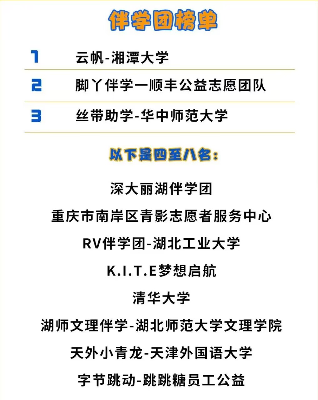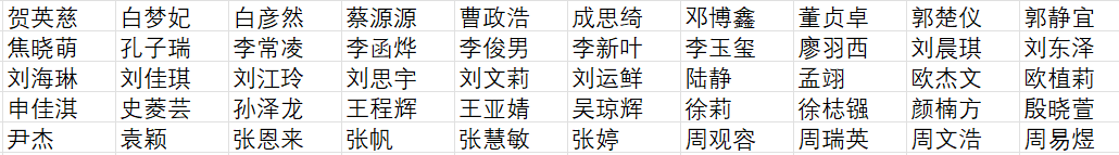 以下为光荣榜名单(排名不分先后):
