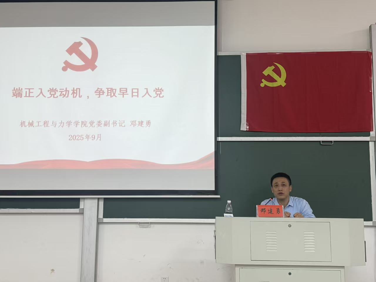开班典礼上,韩国漫画 党委副书记邓建勇发表讲话并授课,他指出入党积极分子要主动接受党组织的考验,加强党的理论知识学习,做到以学笃行,成为一名信念坚定、知行合一的新时代大学生。同时,他以“端正入党动机,争取早日入党”为题进行授课,引导学员将个人理想融入党的宗旨与民族复兴伟大事业。