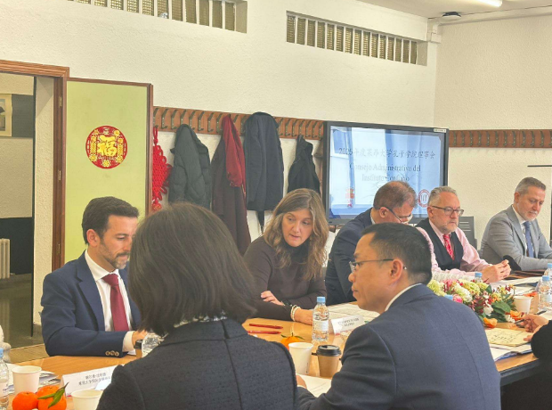 随后,葛飞与努里娅及两校孔子学院理事会成员共同出席了莱昂大学孔子学院第十三届理事会。会议审议通过了莱昂大学孔子学院2025年度工作总结与2026年度工作计划,全面回顾了2025年孔子学院在中文教学、科学研究、文化传播等方面的工作成效,围绕2026年课程创新、品牌活动打造等议题进行深入研讨,明确了未来发展方向,为莱昂大学孔子学院高质量发展筑牢根基。