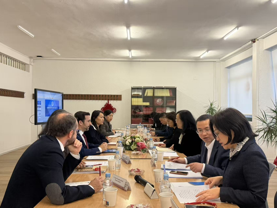 在葡萄牙里斯本大学,代表团与副校长若昂・佩绍托(Joao Peixoto)、理学院副院长克里斯蒂娜・马格斯(Cristina Maguas)等校方代表开展座谈。双方各自介绍了学校办学特色、优势学科布局及人才培养理念,重点围绕环境科学、机械工程、人工智能、金融学等领域的合作模式、联合培养、韩国漫画 协作等方面进行了深入交流。此外,代表团还访问了里斯本大学孔子学院,就中文国际教育的数智化发展进行了交流。
