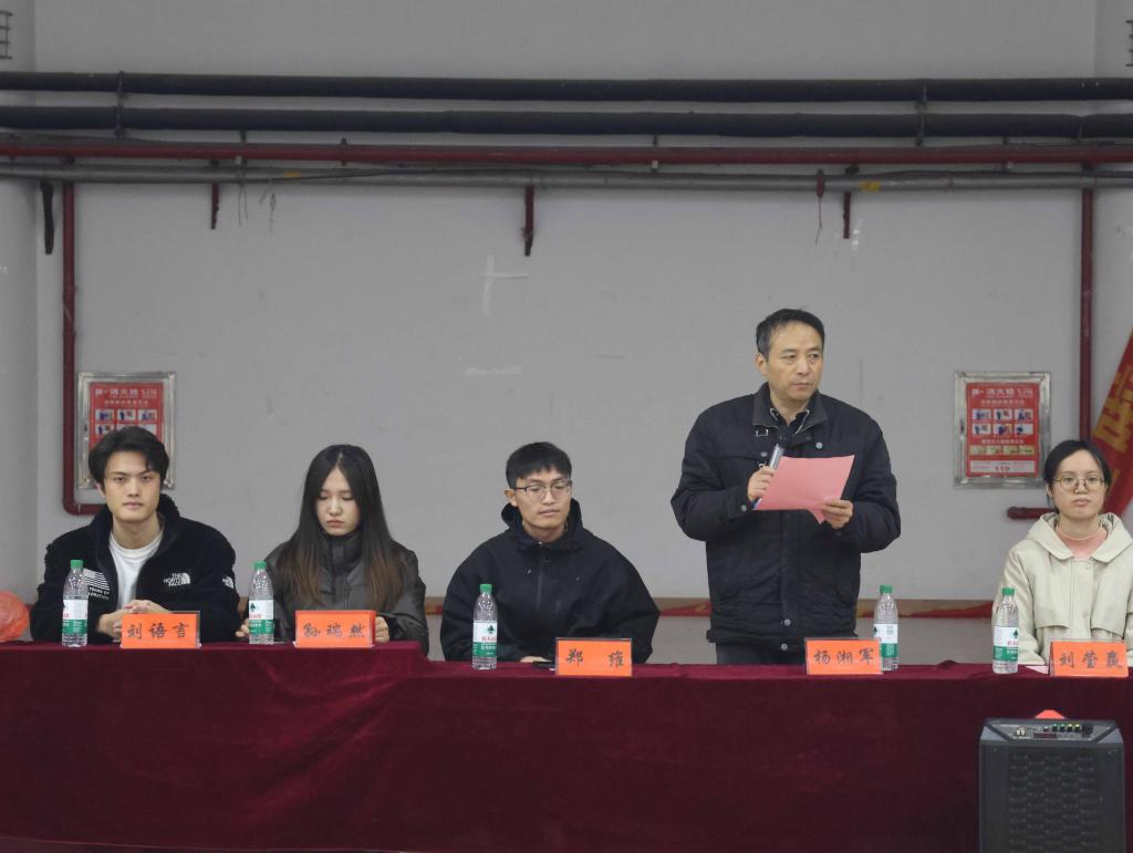 本次篮球赛自开赛以来,历时一个多月,24个新生班级积极参与,充分展现了新生的团结协作和拼搏精神。总决赛当天,场上队员们你追我赶,比分交替上升,比赛氛围紧张而激烈。杨主任全程观看比赛,为场上队员加油助威,并在赛后对参赛选手们的精彩表现给予了高度评价。杨主任表示:“篮球赛不仅仅是一项竞技活动,更是培养同学们团队精神、竞争意识和健康体魄的重要平台。希望同学们能以此次篮球赛为契机,将赛场上顽强拼搏和团结协作的精神融入到学习和生活中。同时,也要保持良好的体育锻炼习惯,拥有健康的身心,更好地迎接未来的挑战,为实现个人理想和国家发展贡献自己的力量。”比赛结束后,杨主任为冠军队伍2024级机设三班和MVP选手颁发了奖杯和荣誉证书,与参赛队员亲切交流并合影留念。