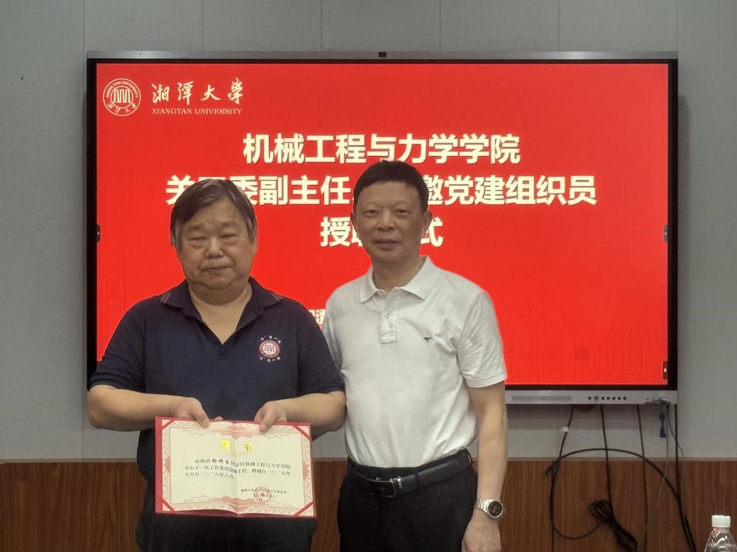 校关工委副主任李新明为徐顺生同志颁发关心下一代工作委员副主任聘书,离退休工作部部长周润其为其颁发特邀党建组织员聘书。