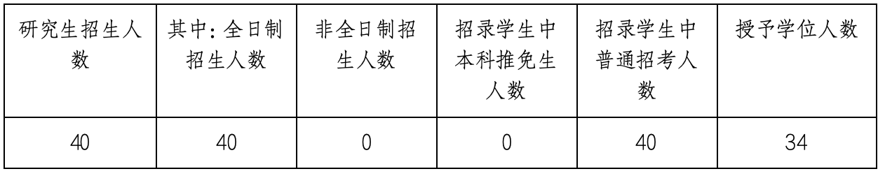 (2)研究生规模偏小,一志愿报考学生数量偏低。目前学位点招生名额较少,学位点平均每位导师每年招生名额不足2人,需要努力增加研究生招生规模。同时,学位点一志愿报考学生数量较少,导致招生工作开展有一定难度,需加强招生宣传,提高一志愿报考学生数量。