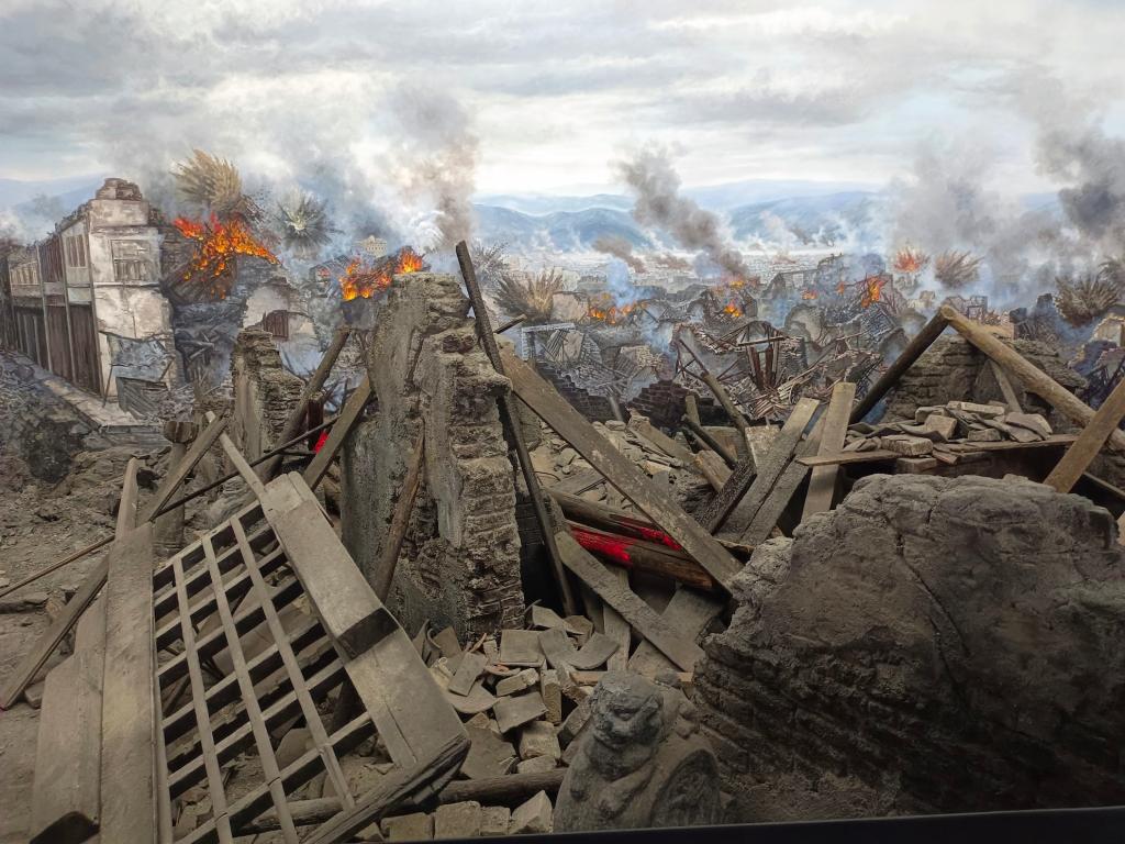 馆内最为震撼人心的,莫过于那座复原的“日寇轰炸长沙后残垣断壁”展区。它静静地伫立,仿佛是时间凝固的伤口,让人不由自主地驻足凝视。透过这斑驳的遗迹,历史的画卷缓缓展开,昔日宁静祥和的城镇在炮火中轰然崩塌,山河破碎,草木同悲,一幅幅悲壮的画面在心头交织。这不仅是日军侵华暴行的铁证,更是对后世国人的深刻警示,提醒我们铭记历史,勿忘国耻,珍惜来之不易的和平。