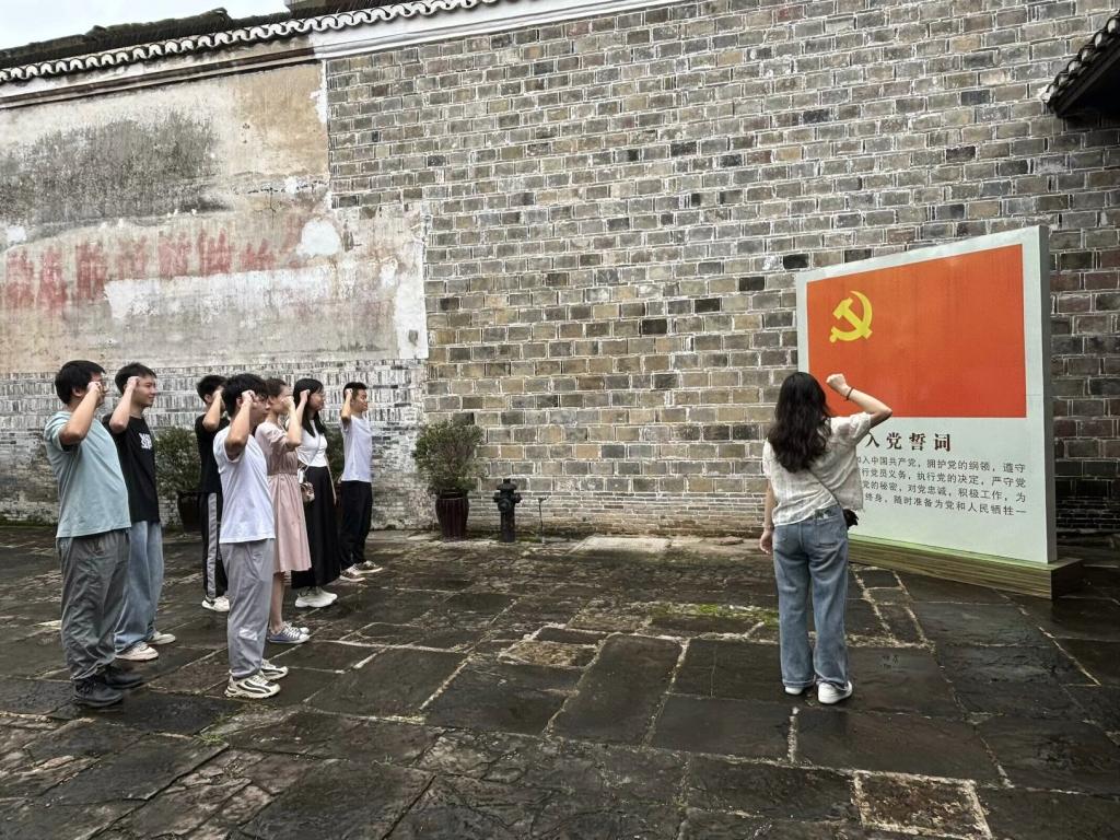 离开宝庆会馆前,怀揣着崇高的使命感及对红色历史的敬仰,实践团面向入党宣誓牌,整齐地排成两行,在领誓人的带领下,一齐举起右拳,铿锵有力地重温入党誓词:“我志愿加入中国共产党,拥护党的纲领,遵守党的章程,履行党员义务,执行党的决定,严守党的纪律,保守党的秘密,对党忠诚,积极工作,为共产主义奋斗终生,随时准备为党和人民牺牲一切,永不叛党。”
