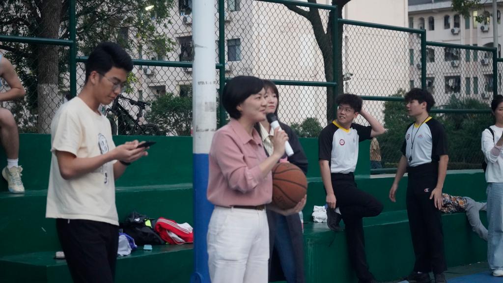 中场休息时间,本次比赛设立三分大赛,五名老师和两名学生展开了激烈的追逐,伴随着场边此起彼伏的为进球的欢呼,最终由学生代表队的张楠以10投6中的成绩拿下了本次三分大赛的冠军。