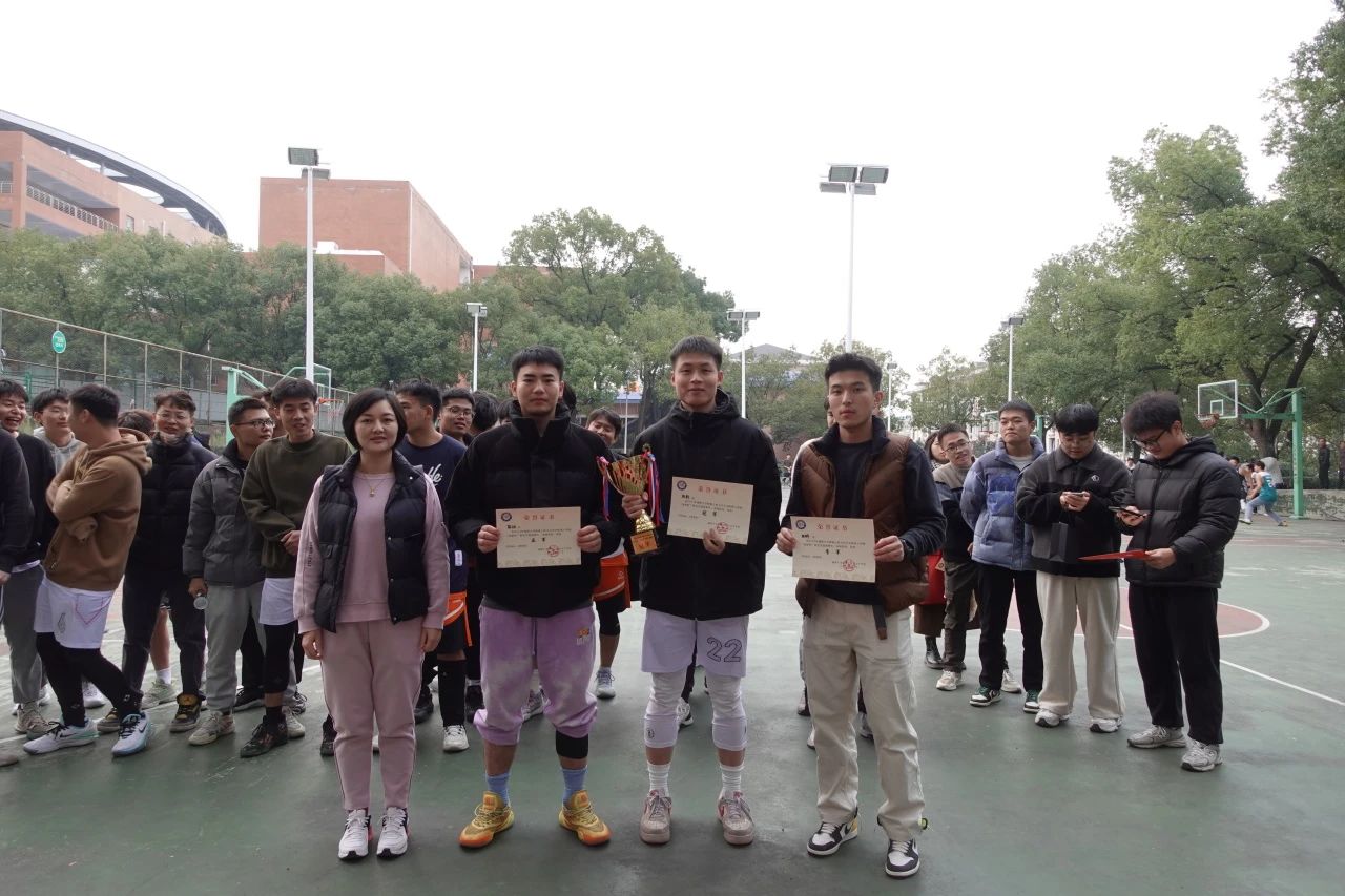 于慧美老师宣读了第十四届“迎新杯”研究生篮球赛的最终获奖名单。获得冠军的队伍是机制队,亚军的队伍是能动队,季军的队伍是材料队;获得优秀组织奖的是机电队,道德风尚奖的队伍是力学队和机设队;最有价值球员是曹楚源;最佳女球员是伍娜;人气球员是曾杨莉;三分大赛冠军是孙超。恭喜以上获奖队伍和个人!