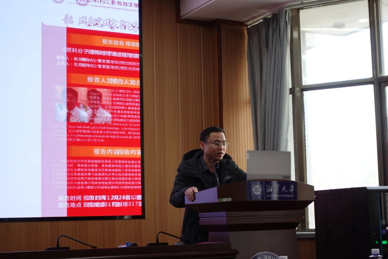 讲座于12月26日下午在机械楼317室顺利举行,邀请了天津大学刘海峰教授以及新加坡国立大学杨文明教授。刘教授为我们讲述以“燃料与发动机协同优化理论与技术”为主题的讲座,刘教授是九三学社天津大学委员会副主委,天津大学-京博新能源联合实验室主任,国家优青,天津市杰青获得者等;杨教授为我们讲述了以“燃料分子结构对燃烧过程与排放物生成的影响”为主题的讲座,杨教授是新加坡国立大学机械学院院长讲席教授,热科学实验室主任,机械工程系研究生学术委员会及教学委员会委员等。