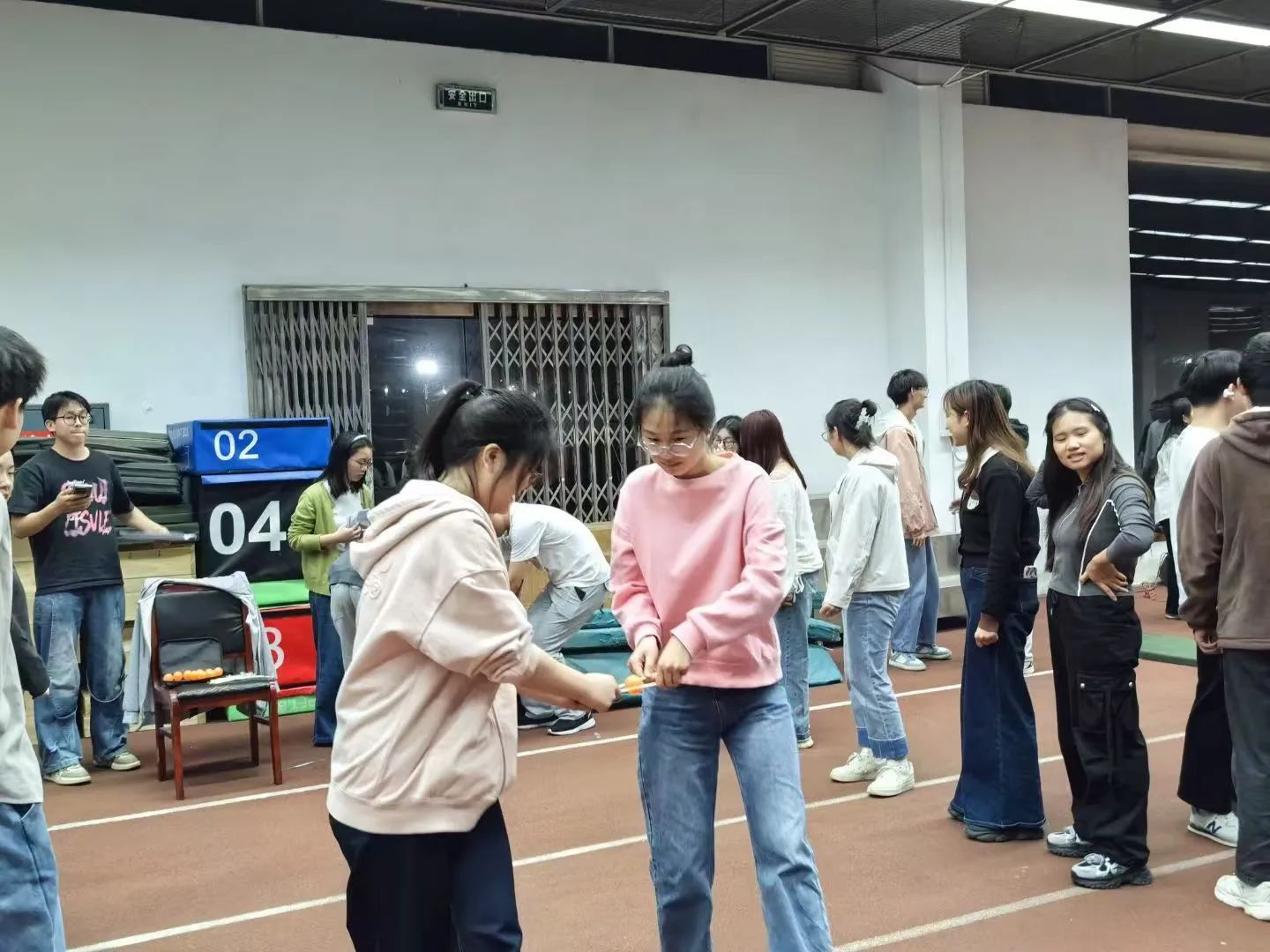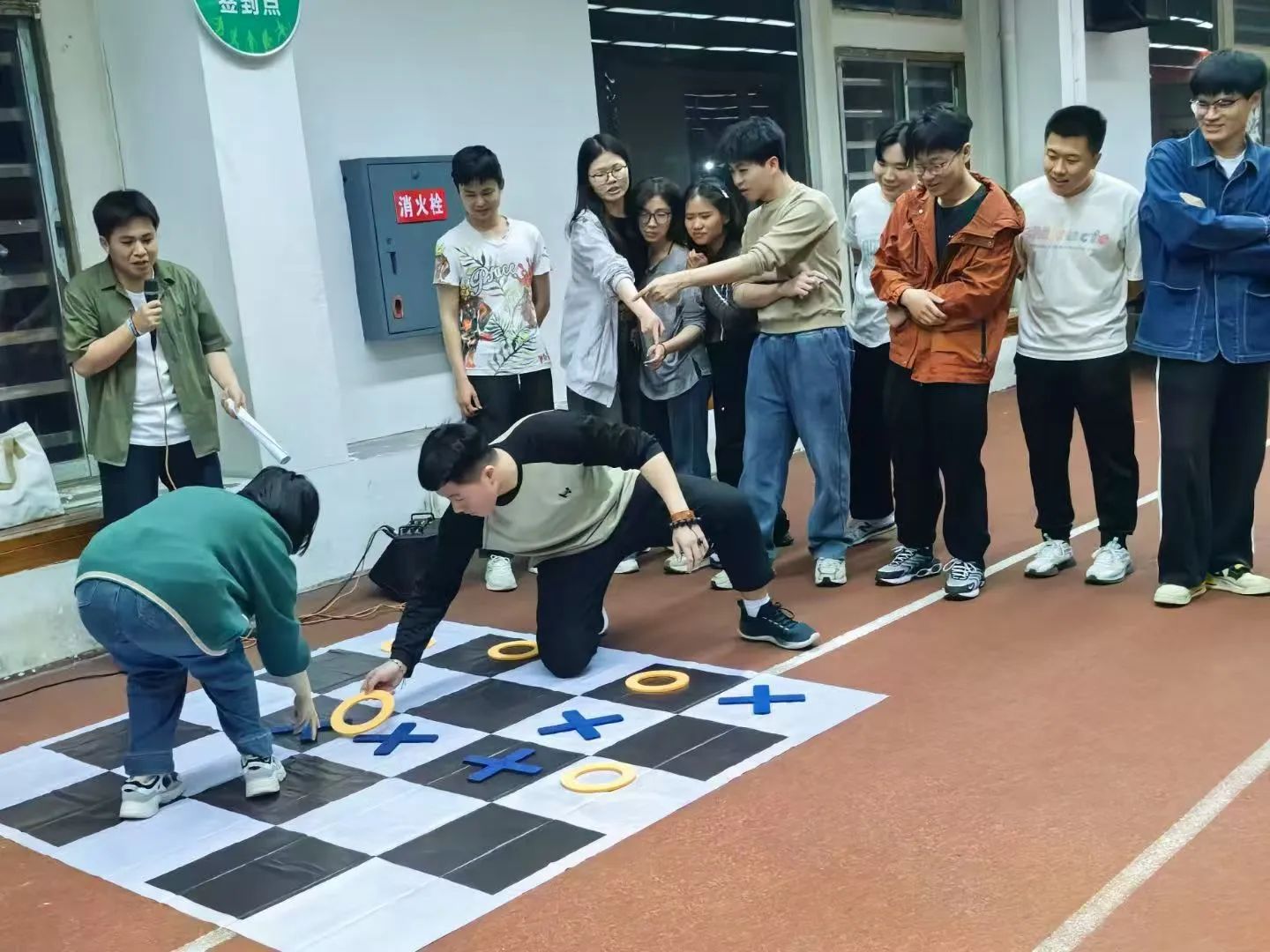在两个半小时的时间里,工作人员精心策划了一系列趣味环节,包括筷子运球、合力跳大绳、你画我猜、真人五子棋等趣味活动,大家其乐融融、不亦乐乎。在游戏过程中,同学们打破学院界限,携手并肩,共同完成挑战,场面热闹非凡。合力大跳绳需要多人共同协作,跟随大绳节奏跳跃。不同学院同学在尝试中交流,在失败中总结,在成功中欢呼,迅速拉近彼此距离。真人五子棋环节,同学们为棋子,在特制“棋盘”上进行真人版五子棋对战。各学院同学化身“军师”,出谋划策,排兵布阵,尽显策略智慧,场面热闹非凡。