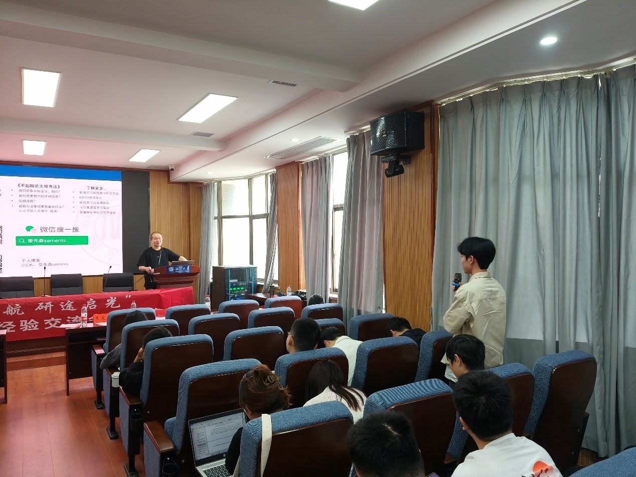 最后,材料科学与工程学院2021级博士生李泽贤围绕“论文写作经验分享”展开,详细传授了论文写作的技巧和心得。他还结合自身发表多篇SCI论文的经验,提到选题需兼具学术价值与社会需求,文献阅读应遵循“先综述后论著”的原则,通过梳理领域内近五年的高被引论文,快速定位研究空白。针对同学们普遍存在的“选题过大”问题,他建议采用“范围聚焦法”:从广泛兴趣出发,通过三轮文献筛选逐步缩小研究边界,最终形成可操作的微观课题。