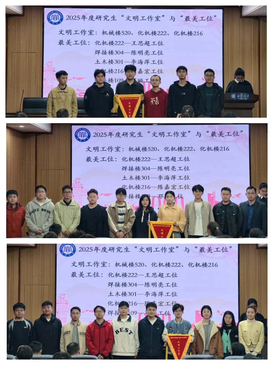 学院领导、老师为2025年度研究生“文明工作室”与“最美工位”获奖者颁发了荣誉证书。这是对获奖者的最高荣誉,也是对他们在活动中所取得成绩的充分肯定。