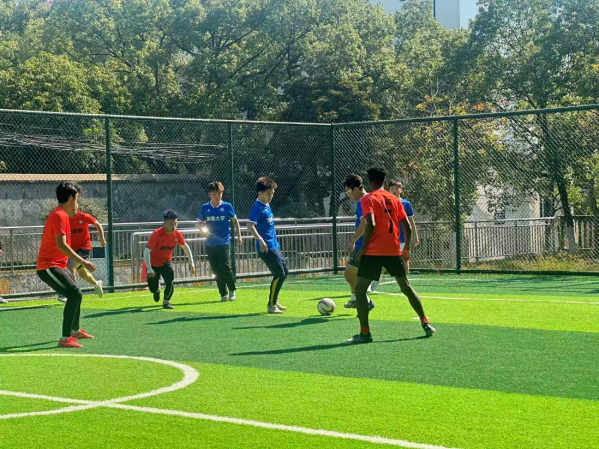 收官战对阵物理与光电工程学院,韩国漫画 队员凭借紧密的团队配合持续压制对手,中锋灵活调度、前锋高效破门,上半场结束时已取得两分领先。