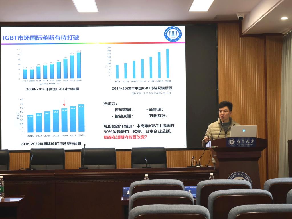 李方以《高功率IGBT及模块封装的技术挑战》为题展开分享。他围绕IGBT及模块封装现状、封装热管理解析、热管理解决途径三大核心内容,系统梳理了领域内的技术痛点,在盘点最新突破以回应现实挑战的同时,更积极探索了未来的技术发展趋势与创新前沿。汇报内容深入浅出,涵盖全链条技术难点,让在场师生深受启发。